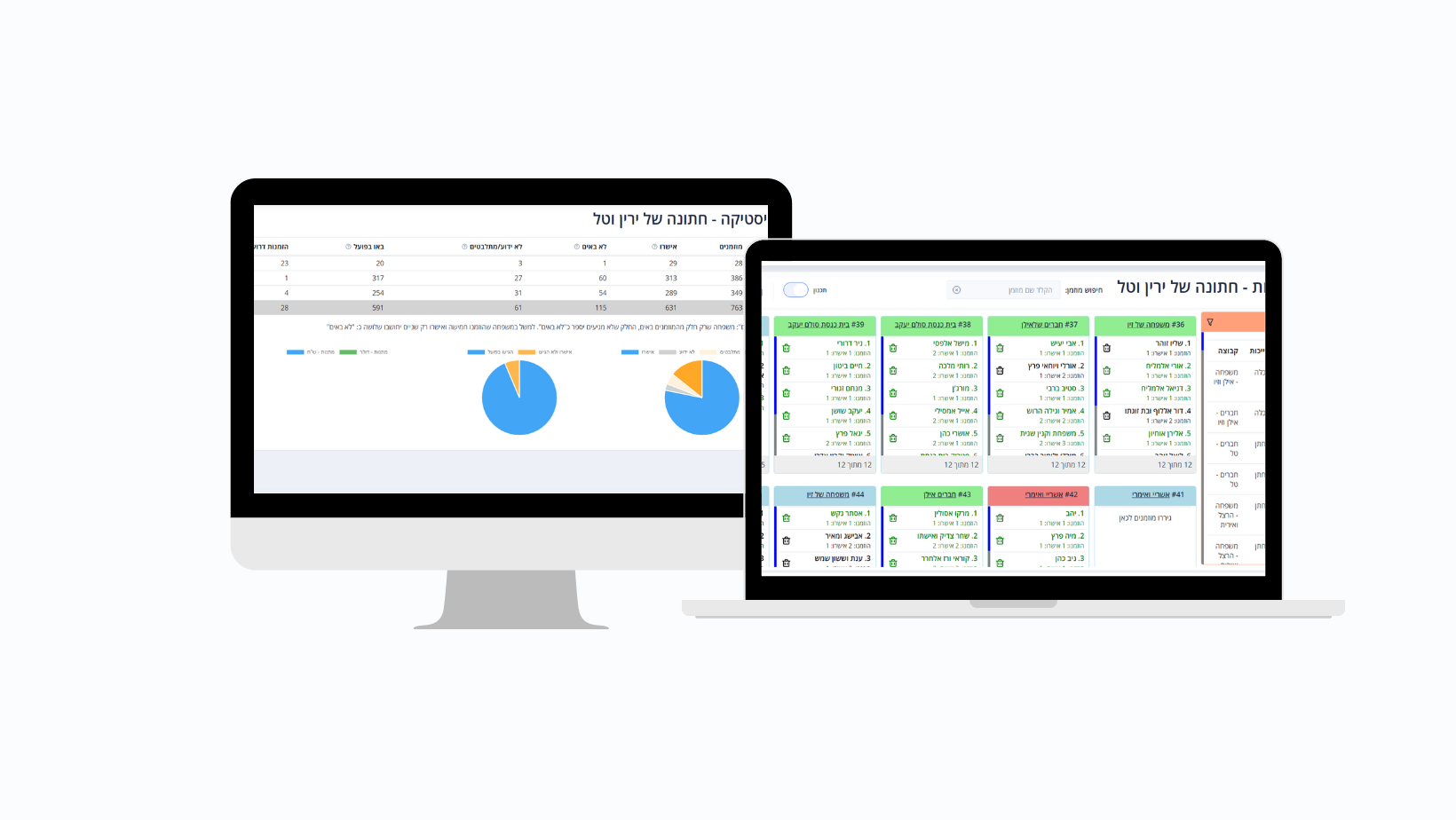 מערכת שמאפשרת לקבל תמונת מצב מלאה, בזמן אמת, על סטטוס הגעת האורחים, מעקב הוצאות, סידורי הושבה בצורה פשוטה, חישוב מתנות שהתקבלו מהאורחים ועוד.